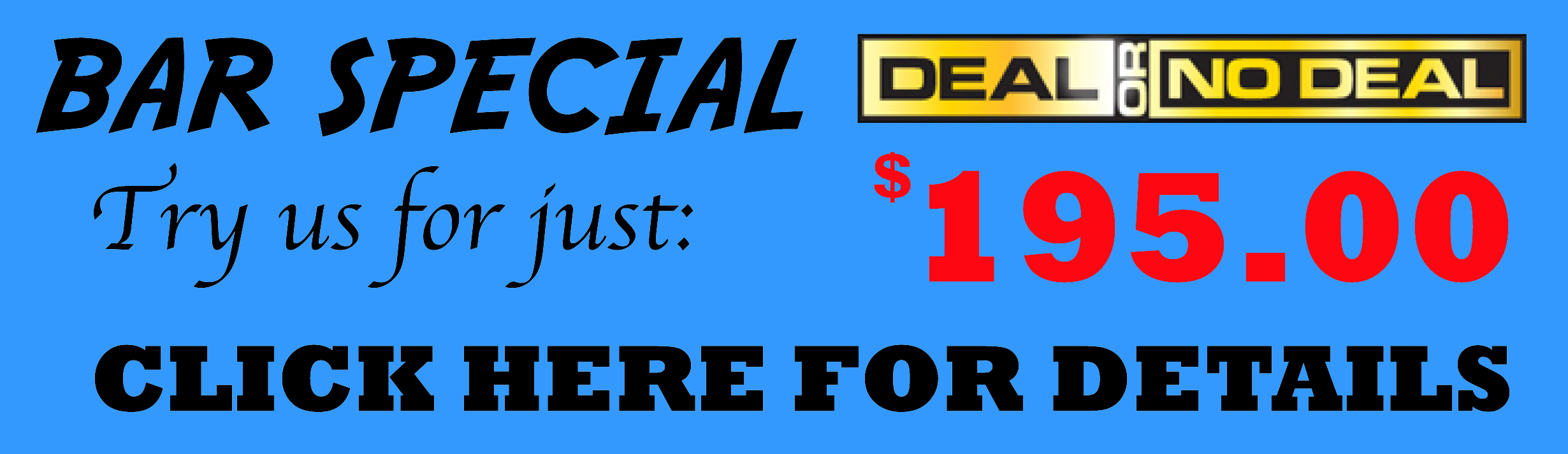 3 hours of Entertainment, including 3 games of Deal or No Deal, each with a top prize of $100.00. Signs to post stating event date and time.